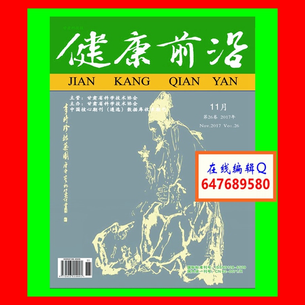 《健康前沿》杂志是国家新闻出版广电总局正式批准的国家级医学专业性综合学术期刊,由国家卫生部新闻中心指导、甘肃省科学技术协会主管、主办,甘肃科技报协办。国内刊号:CN 62-0071/R,国际刊号:ISSN 9128-6509,邮发代号:53-3。主要栏目设置:常规设有论著、临床研究、综述与讲座、诊疗经验、护理园地、医院管理、病例报道等专栏;根据医学发展和临床需要开设的述评及专科(专病)专栏等。